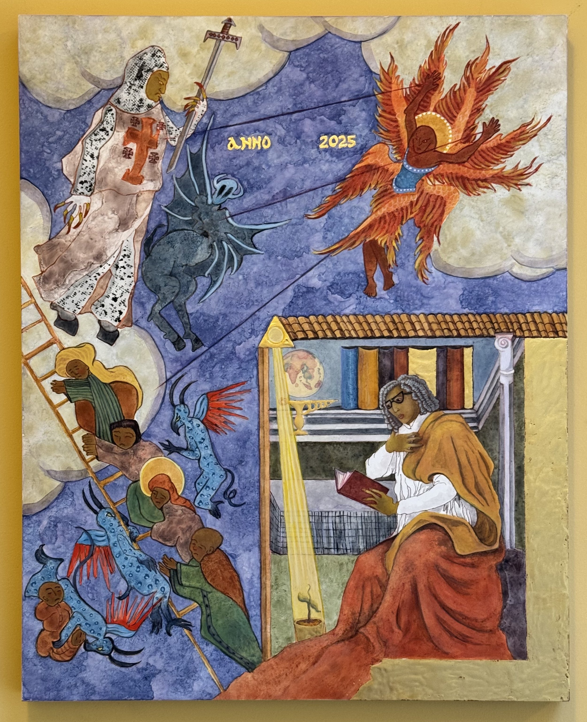 CONCEDO NULLI (I CONCEDE NOTHING) - 16” x 16” egg tempera and gold leaf on gesso board, 2022, collection of Marilyn Mandel CA